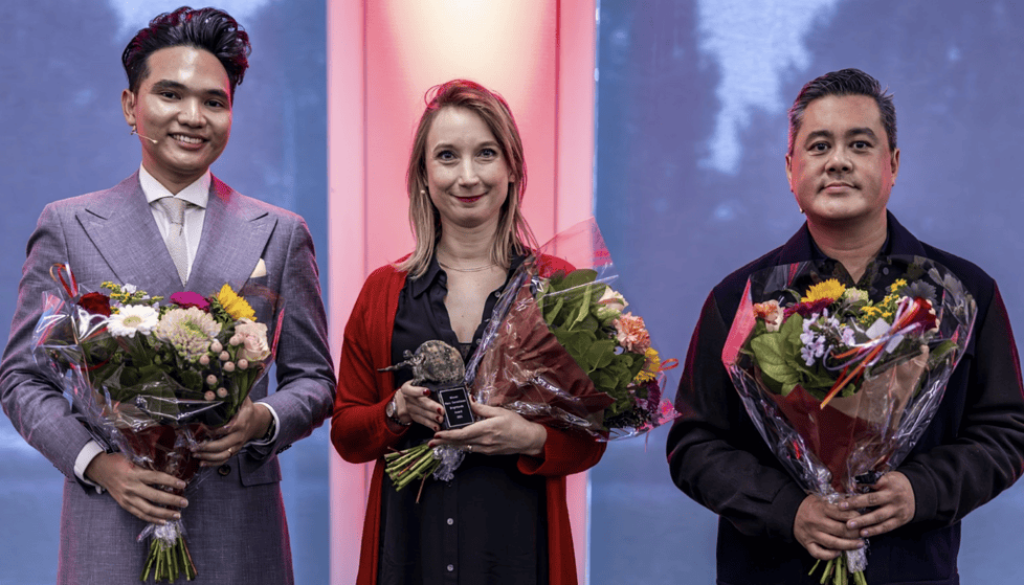 Giulia Bellinetti has won the 2024 Marc Cornelissen Brightlands Award. After giving her pitch on the collection and exchange of sustainable materials, the jury, chaired by Maurits Groen, pronounced her the winner. Province of Limburg Deputy Stephan Satijn (Economy, Finance, Operations, Public Affairs) presented her with the trophy and a cash prize of 35,000 euros.